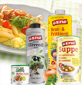 Das GEFRO Olivenöl, das Brat- & Frittieröl und unsere GEFRO Suppe, das universelle Kräuter-Würzmittel sind Zutaten vieler leckerer Rezepte!